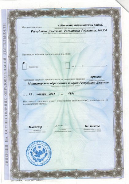 | Адрес местонахождения образовательной организации* | 368554.Респ.Дагестан. Каякентский район с.Каякент. Ул.Шихсаидова 33 а |